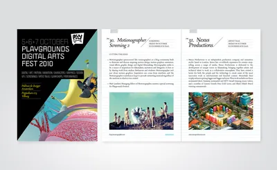 Playgrounds Digital Arts Festival is a festival for innovative and creative digital art. During the three-day festival in Amsterdam, Tilburg and Eindhoven Playgrounds presents an impression of the latest developments in technology as well as creativity. The festival programme offers an inspiring mix of inventive films, documentaries, animation, graphic design, artist talks, character design and performances.